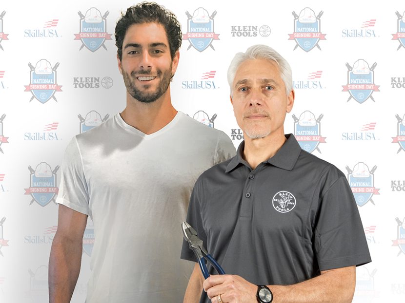 On National Signing Day, thousands of high school seniors across the nation will be recognized for their decision to pursue a career in residential wiring, building trades and renovations, HVAC or plumbing. In a style similar to “National Signing Day” events for high school student athletes, Klein Tools will host Facebook Live segments showcasing seniors announcing their career plans and signing “letters of intent” for a job offer, apprenticeship or advanced technical training. Jimmy Garoppolo and his father will be interacting with students across the country via live video feed on Klein Tools’ Facebook page.