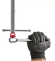 The basin wrenches’ handles feature a patent-pending, new-to-world ratchet-ready design compatible with any standard 3/8-inch drive ratchet, allowing users to install or remove basin and faucet nuts faster than with traditional basin wrench models. Also integrated in the handle are slots designed to receive a screwdriver, delivering the maximum break-away leverage required to remove corroded basin and faucet nuts. A traditional horizontal bar is also built into the shank, providing users with another way to deliver leverage in confined jobsite environments.